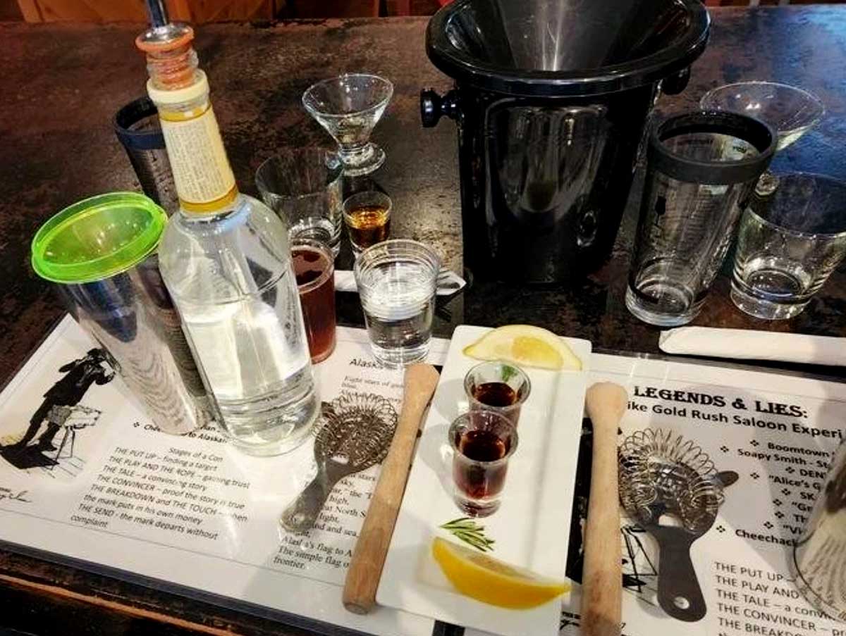Receive one free Legends & Lies tour with purchase of an accompanying tour. Enjoy the Saloon Room at the Historic Skagway Inn with a live presentation depicting activities commonly experienced in Alaskan Gold Rush Era saloons. Learn why Saloons were the social center of a prospectors life, See bartender tricks of the trade. Try your hand at free pouring. Prepare alcoholic and non-alcoholic drinks popular during the Last Gold Rush. Hear and Sing songs popular during the Gold Rush. Learn the key elements to the Three Card Monte, and other confidence games.